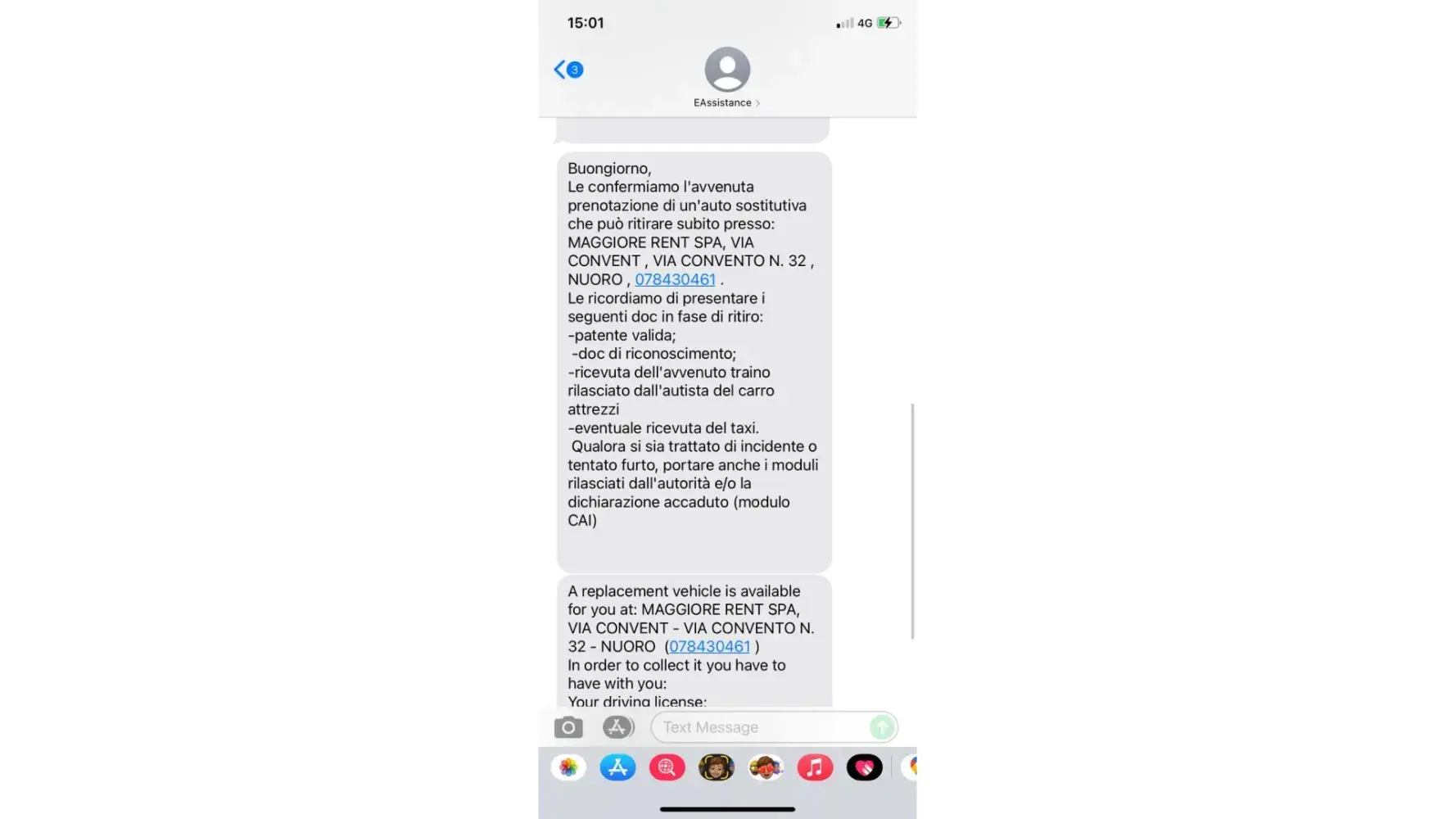 We had to wait a further hour after “authorisation†was secured before Roadside Assistance came out to tow the car. In the meantime I was on the phone to Maggiore in Alghero, who told us a replacement car would be waiting for us in Maggiore Nuoro (confirmation message attached); I provided the staff-member in Alghero with my rental contract number and she assured me on multiple occasions that if we paid for a taxi to Nuoro and gave the receipt to the Maggiore desk it would be refunded. We got a lift with the Roadside Assistance in the end, but when we arrived in Nuoro there was no car for us. My friends had missed their flights now, and had to pay 543.47GBP for new flights.