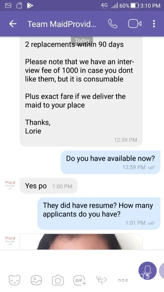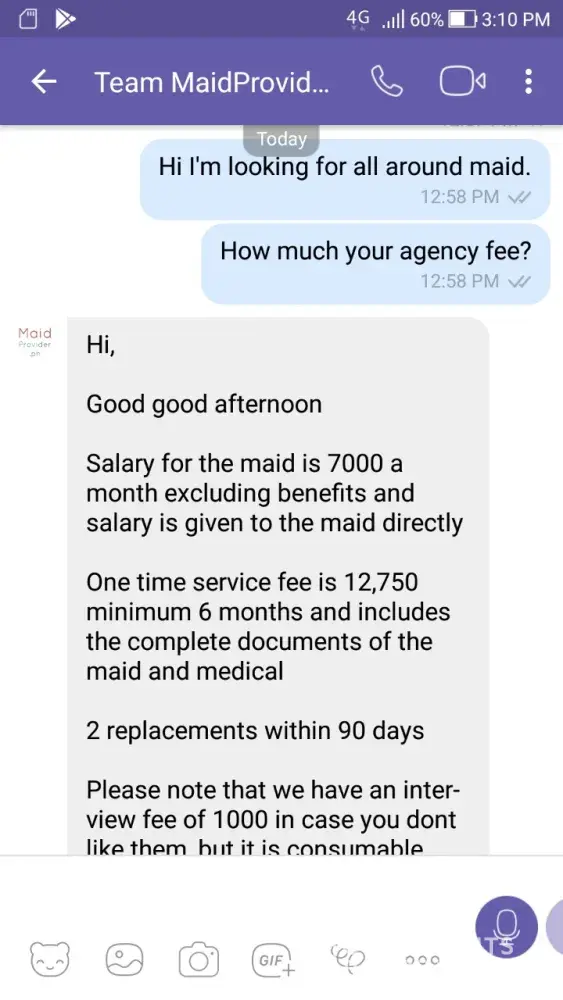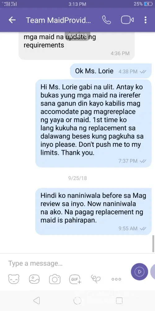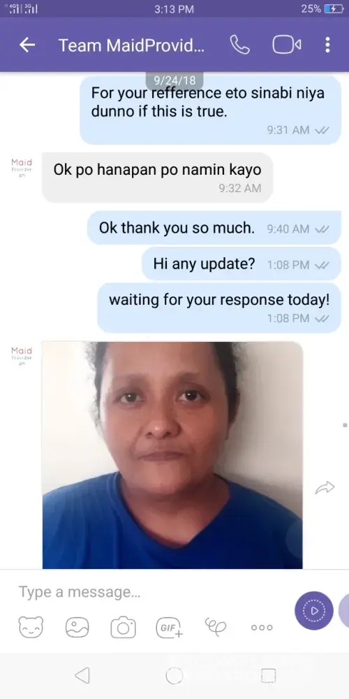 This agency is a Modus! be careful for dealing with them, I will make a sure this agency will be close. To other complainants, please message me. I have media partner. I will also make a blog about them. I was asking for a replacement and we waited for almost 1 week since they said they don't have available maid yet, but I found out using a dummy account that they have available maid already but they do not priorities the replacement and just ignoring it. They are using their contract as excuse and to trap their clients. Please careful also to this lady below I found out she back in the agency in different profile..