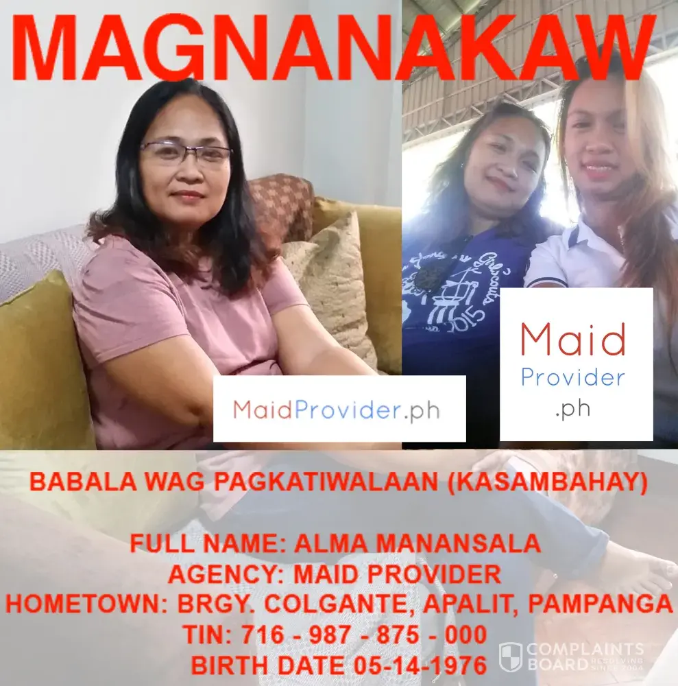 Bilang iang Kasambahay I recommend,MAID PROVIDER.PH dahil, liget at liscence agency po sila maliban po jan with BNI,POLICE at medical po Sila and free benefits at Dito safe Ako Kasi habang nag process free food nmn kami..if ever di magkaintindihan sa amo pwd nmn find another employer at ok rin ang mga staff mabait din Sila,thank you so much MAID PROVIDER.PH GOD BLESS...