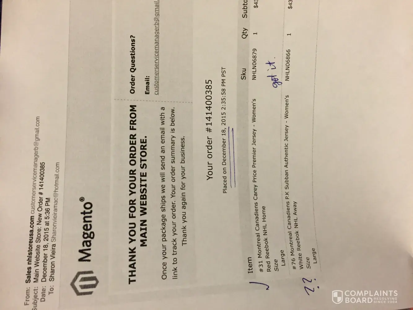 I ordered 2 hockey jerseys and got only one! Can't get in touch with these people at all! I thought I was paying $107US For 2 jerseys.. My bill from my credit card was 165$! And I only received one! Still waiting on a response!