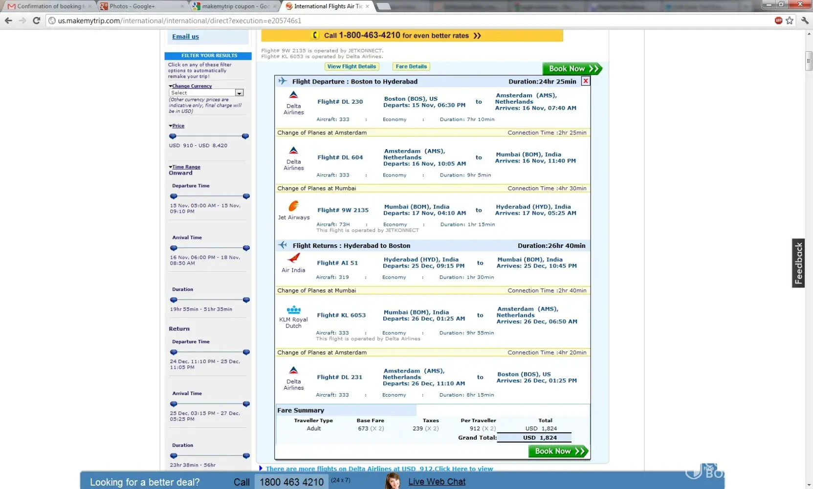 Also, we are not being harsh to anyone here. I very well know what is a foreign transaction fee. I have done international transactions earlier. But when you go to a US website "us.makemytrip.com" and everything is told in USD, you see a US toll free number, you expect the company to make the transaction with in US and not an international transaction. They never mention that the transaction will be made in India. I have earlier done some India domestic bookings on "Indian tarvel sites" using my US credit card and I have been charged FTF. But I never questioned them because in those cases I knew there will be an FTF and I was able to make informed decisions.