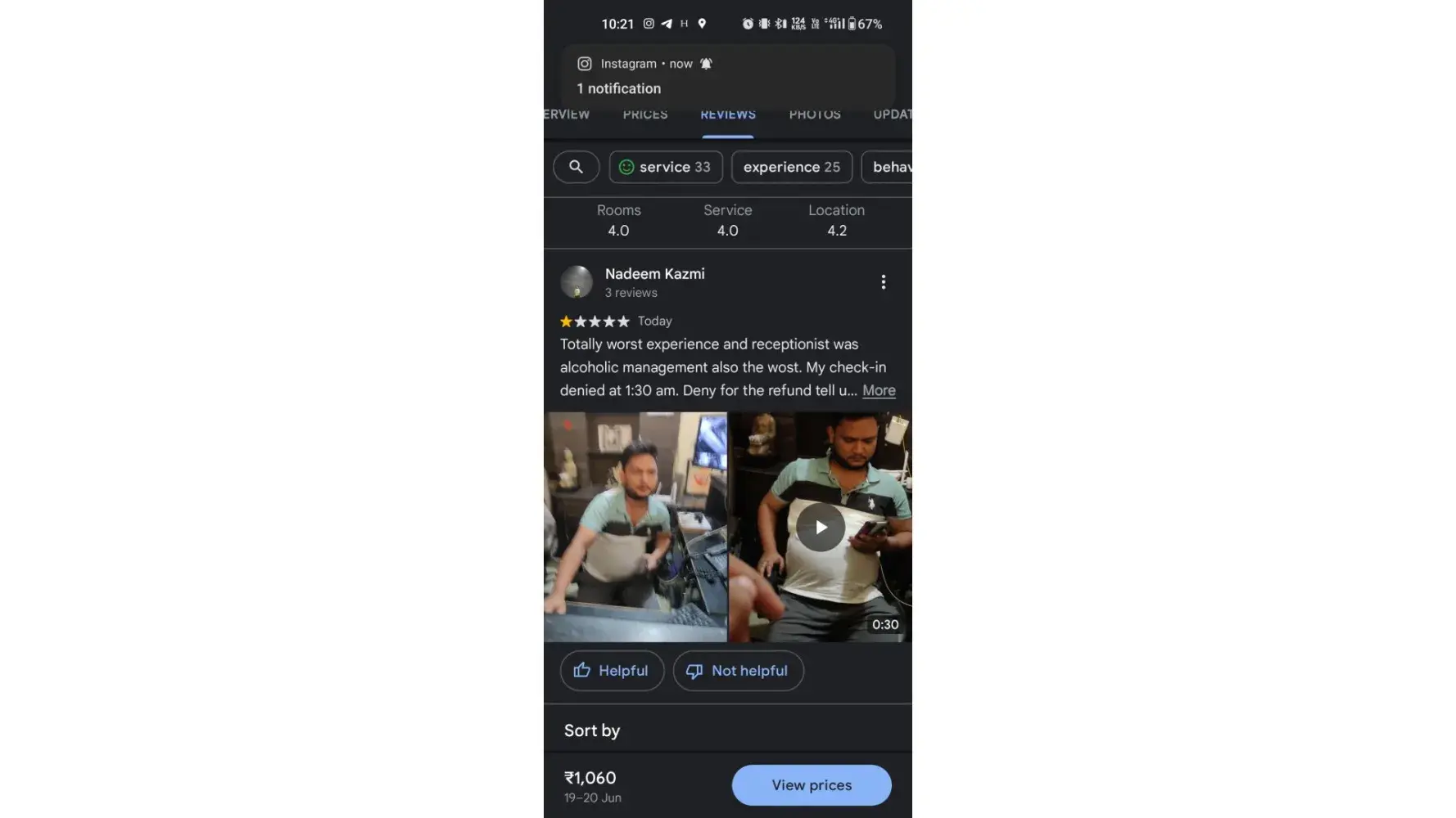 The next day, I tried again, but there was no response. I called customer care, but they were helpless. I raised a complaint on their website, but there was no action. I had to travel with my family, and I would be in deep trouble if something went wrong. But since I had already made the payment (MMT offers only partial refund), I decided to take the risk. During my trip, I went to the first hotel, and then they guided me to another hotel which was around 5 KM away.