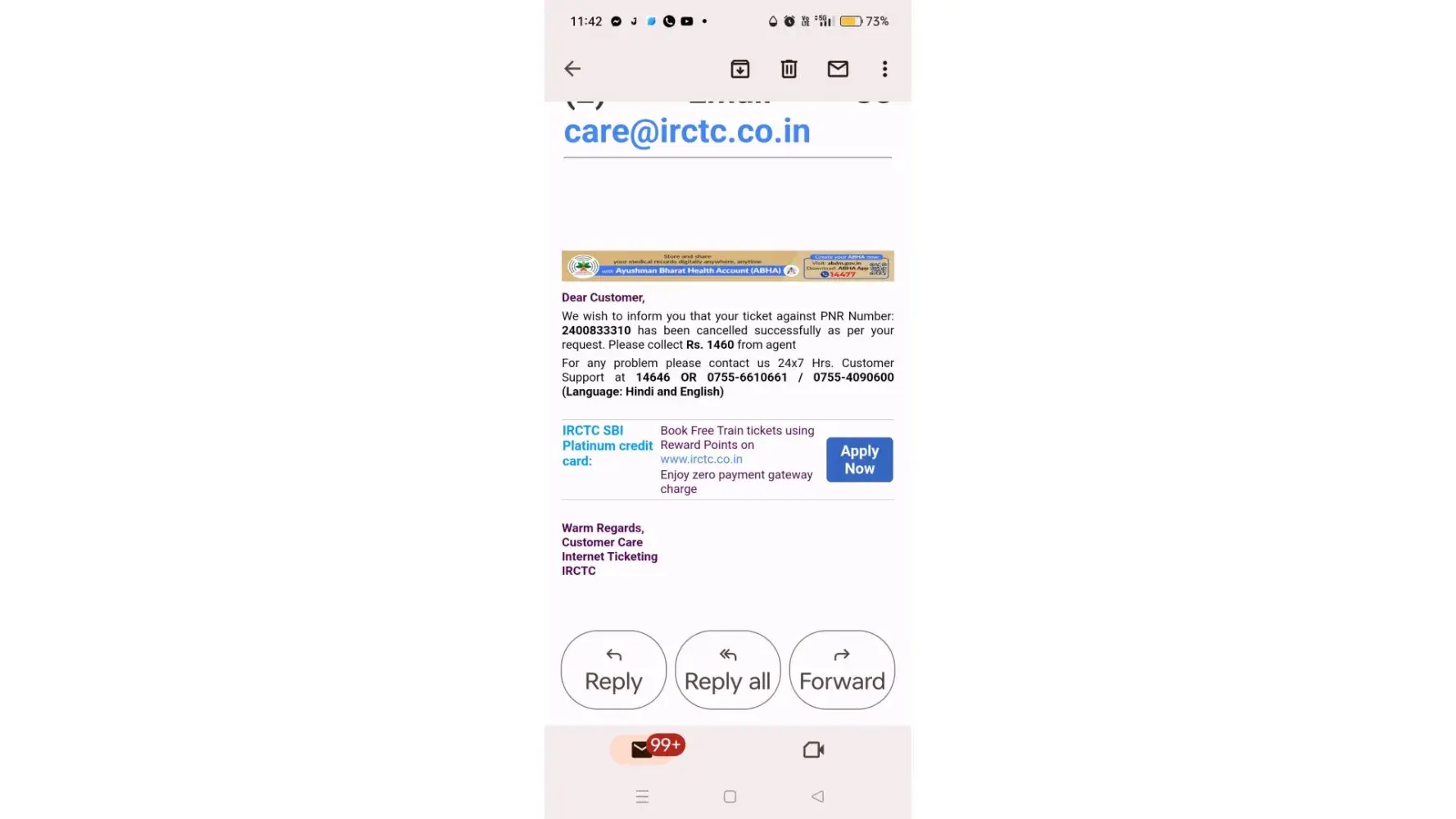 Finally, after what seemed like forever, they congratulated me on resolving the issue. However, I was shocked to see that they had deducted Rs 2425 per ticket head, instead of the Rs 1500 that was supposed to be charged for cancellation. The refund email did not explain the deduction and the math did not make sense.