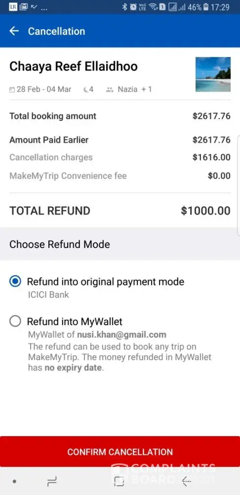 We did a mistake a booked a package for Maldives to gift to a dear friend for her Honeymoon through Makemytrip,