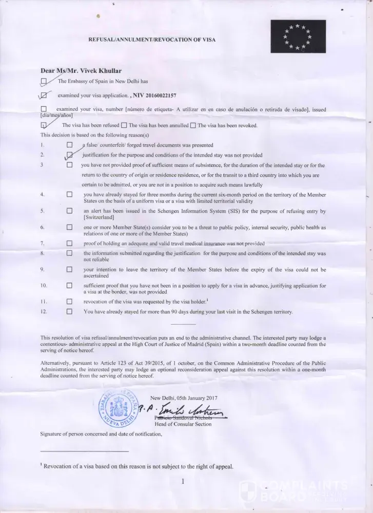 Now have send them both Visa refusal letter issued by the Spanish embassy in New Delhi with cancellation charges waived off email received from Makemytrip online portal itself. Have posted this compliant thrice on their Support link but they have closed it without given a resolution to me (customer). This is how people being cheated on online portals and never not get timely response!