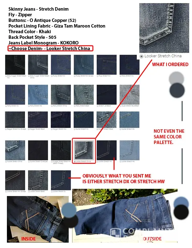 Also, they charged me more than what my invoice shows, including some fee CBC fee. False advertising on website states: Get Tailor Made Jeans As Per Your Specifications Starting at $49, Customize your measurements as below. We make them to fit your needs, your measurements, your special requirements. All our garments are hand cut and individually sewn, as a testimony with and made products they may sometimes differ slightly with the measurements submitted, however as we check each product individually the difference will not be much.
