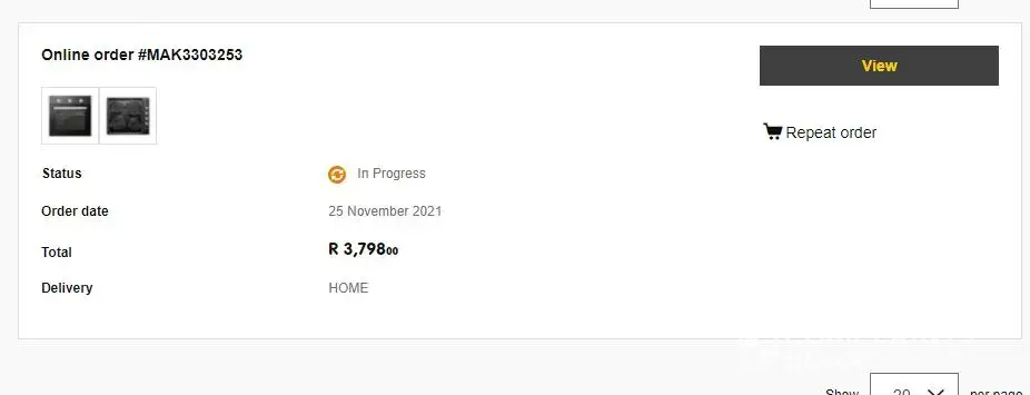 4 November 2021: Placed an order online for an Elba gas stove. Delivery: estimate 21 days. Didn't think it would actually take 21days when most companies deliver in under 7 days. However I accepted the delivery period.