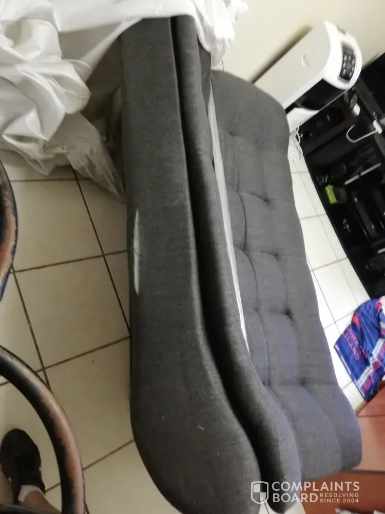 I would like a refund or repair to my couch that I ordered on the 8th of February which only arrived today on the 18th of March and the side is torn.