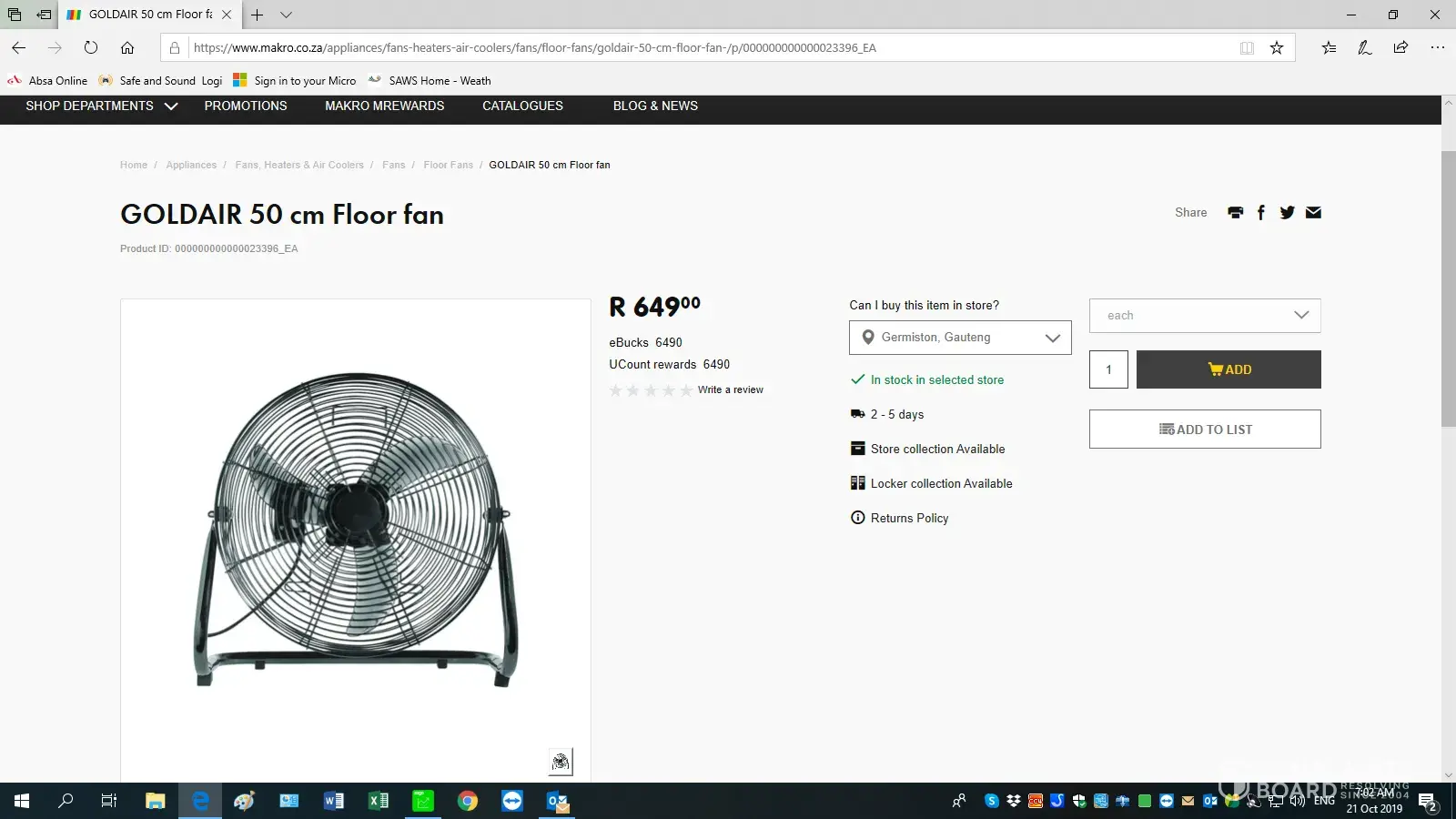 I phoned Macro head office on Saturday morning to enquire about the 50cm Goldair Fan that is advertised for R649.00. They assured me that Makro Bloemfontein do have stock. I went to the shop in Bloemfontein to buy two of the fans for our company. The manager of the specific department told me that the advert is the fan that is in the 46cm fan's box (see photo attached). He told me that the description on the box is wrong (it was a printing mistake on the box), but he assured me that the fan inside is a 50cm fan and the 50cm is indicated on the fan. Unfortunately, I believed him. When I got back at work we opened the box just to find out that the description on the fan is 46cm and not 50cm.