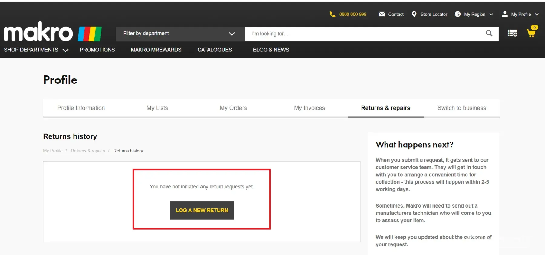 When I logged in to Makro online again, I see that I don't have any history of the returned item. Makro online is now deleting data in the backend now?