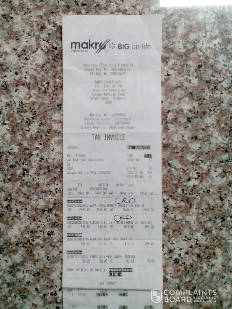 Very upset and disappointed in Makro as a flagship wholesaler.