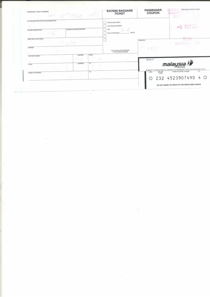 Anyway, I am writing here to make the MH administration aware for future business. And I also think in next future during travel to choose KUL and MH is also. For your reference, I attached my boarding pass and relevant excess baggage tickets.