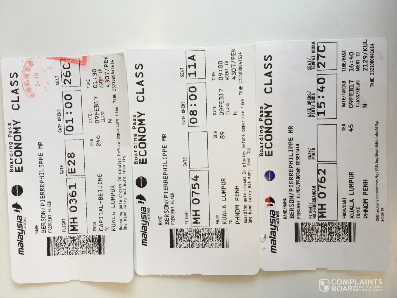 My husband and I took a flight from Beijing to Kuala Lumpur on the 9th of February 1:30 am. The flight has been delayed so we lost our connexion in Kuala Lumpur to go to Phnom Penh. We were supposed to leave about 9am but we arrived in Kuala Lumpur at this time.