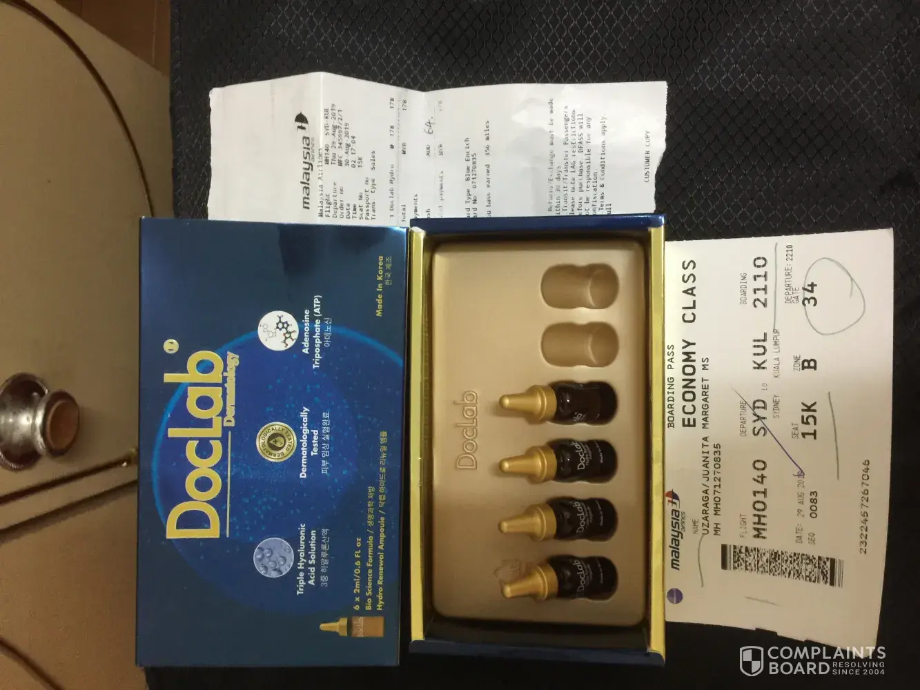 Malaysia Airlines defective product doclab hydro renewal ampoule