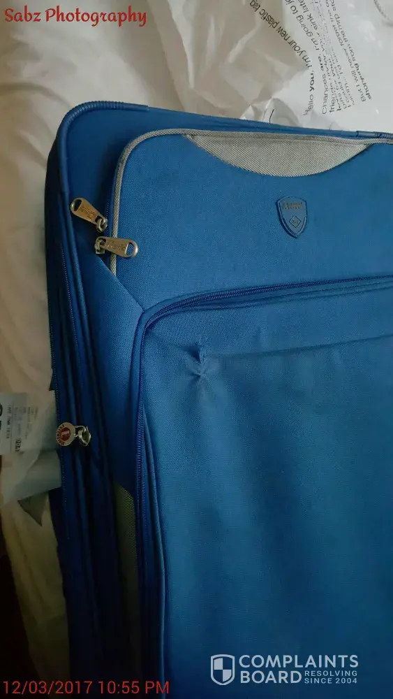 My luggage suitcase was damaged on the front. It seems as it was dragged with dirt marks followed by a damage/tear.
