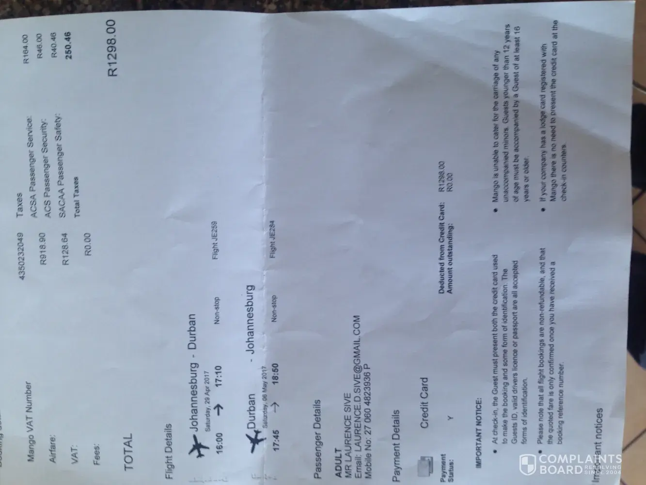 Mango Airlines Complaints Page 16 of 23