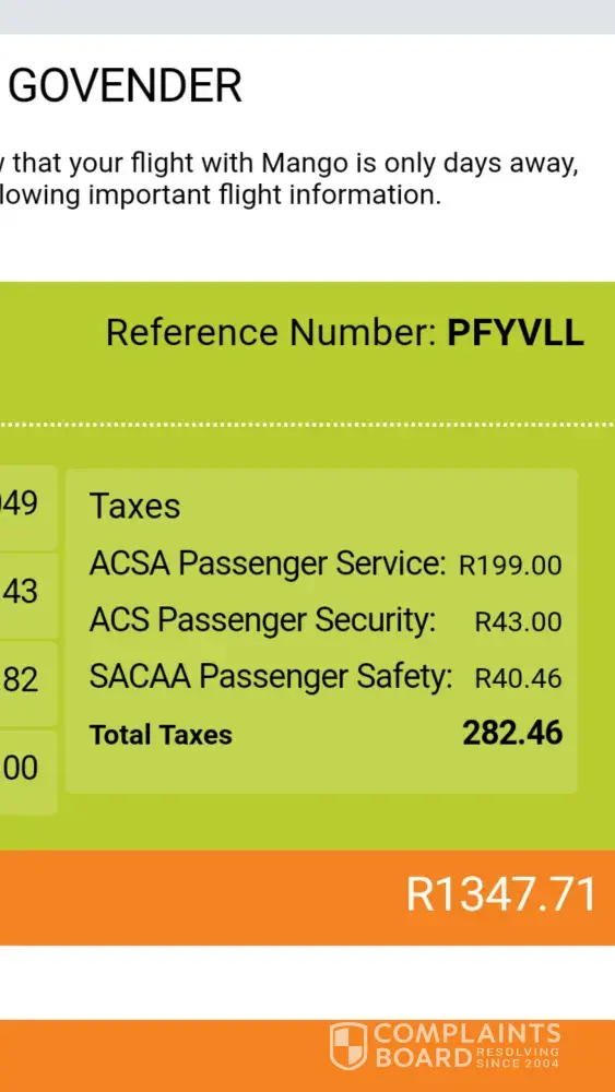The next day I sent Mango the proof of the boarding pass on the other airline and requested the refund be done to my Standard bank personal account which I had used to buy the replacement ticket on Kulula.com.