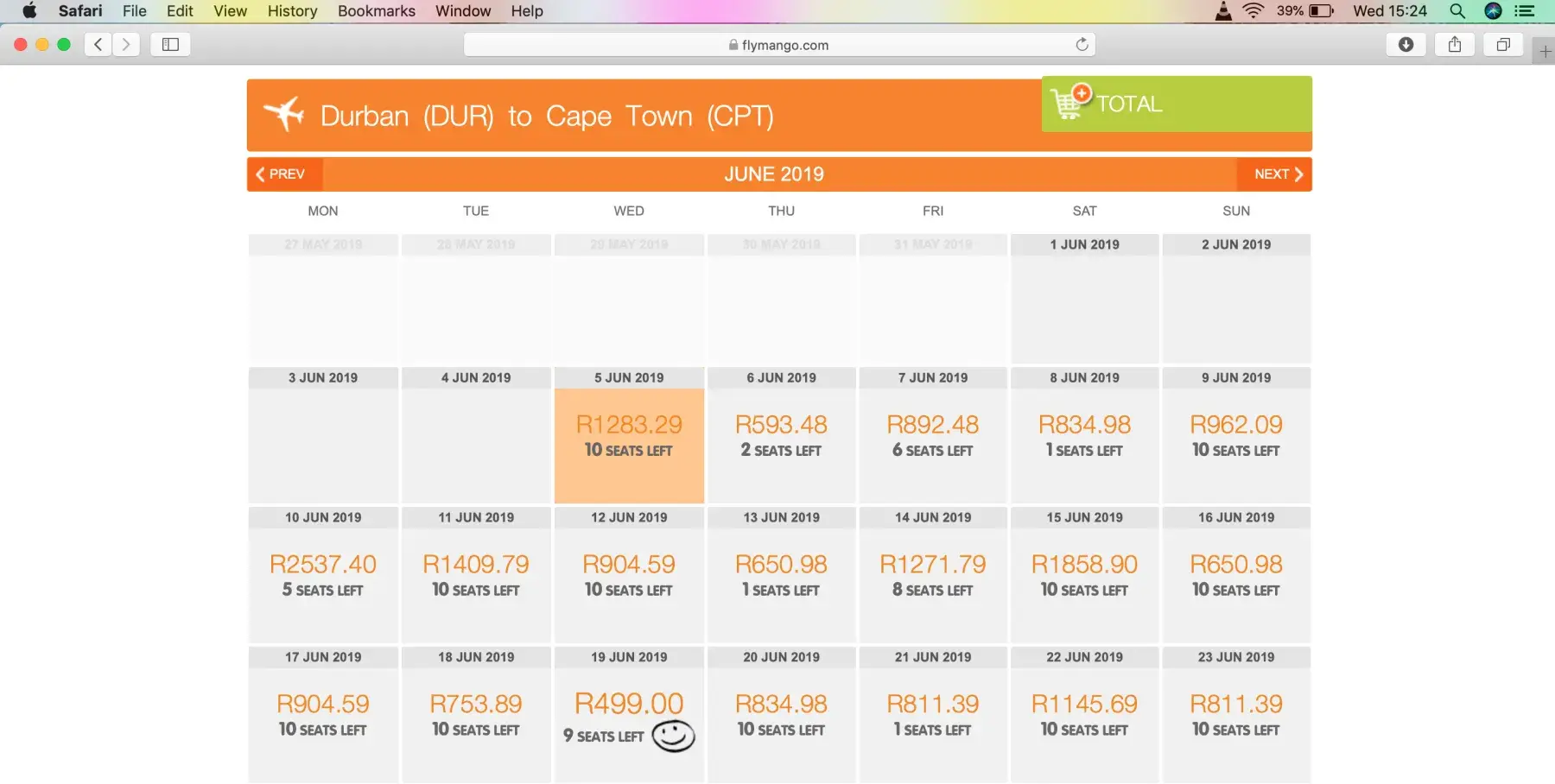 I went onto Mango's website and saw there was a special on flights from Cape Town to Durban at R499.00. Thought I would book, clicked on the flights and was met with the prices suddenly being different. Contacted the customer care line to ask for assistance and was met with a "well the system hasn't updated so book another flight." When I complained and said but it's not my fault if your website says otherwise. He said that at 3pm the tickets had stopped selling at that price and it would reflect shortly. I went back on at 3.20pm and the prices are still the same.