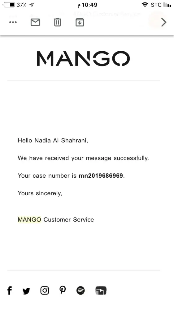 I have visited your shops internationally many times, whether it was in UK or any other places as Mango is one of my favourite stops for shopping. But this incident has left a bitter taste . I did not appreciate how we were treated. I could list a huge list of items I bought at your shops whether in Mauritius or internationally. I do not claim that a customer is always right but I assert the right to be treated properly and with respect. I do not know what kind of resolution is given to customers like myself in that kind of situation but I do hope this is not the kind of people your shop will continue to employ.