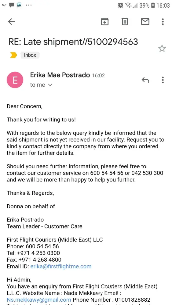 Waiting for your reply.i am attaching a photo of the email from.the fake shipping company your custome care sent me its link.