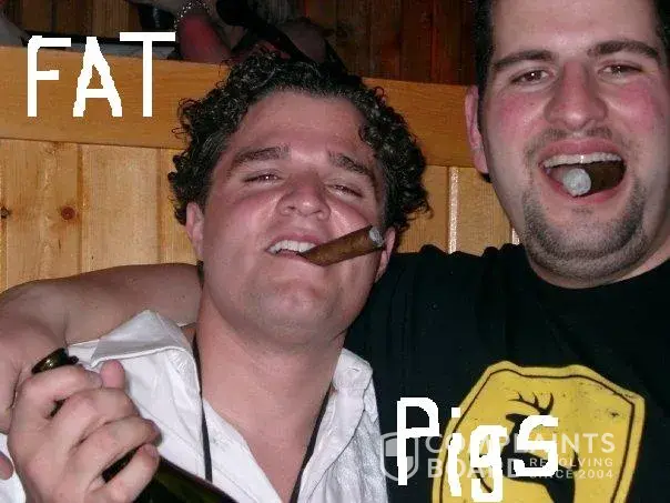 Emmanuel (Manoli) KARAGIANNAKIS and John Caruso, Shady businessmen that will extort to fulfill their wannabe lifestyle. Emmanuel is a wanna be "cali" boy that tries to hard to impress and hits the bottle too often as we can see. Both have huge guts and greasy hair.