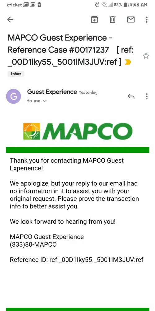 MAPCO emailsloyaltyconcerns@mapcoexpress.com100%Confidence score: 100%Support