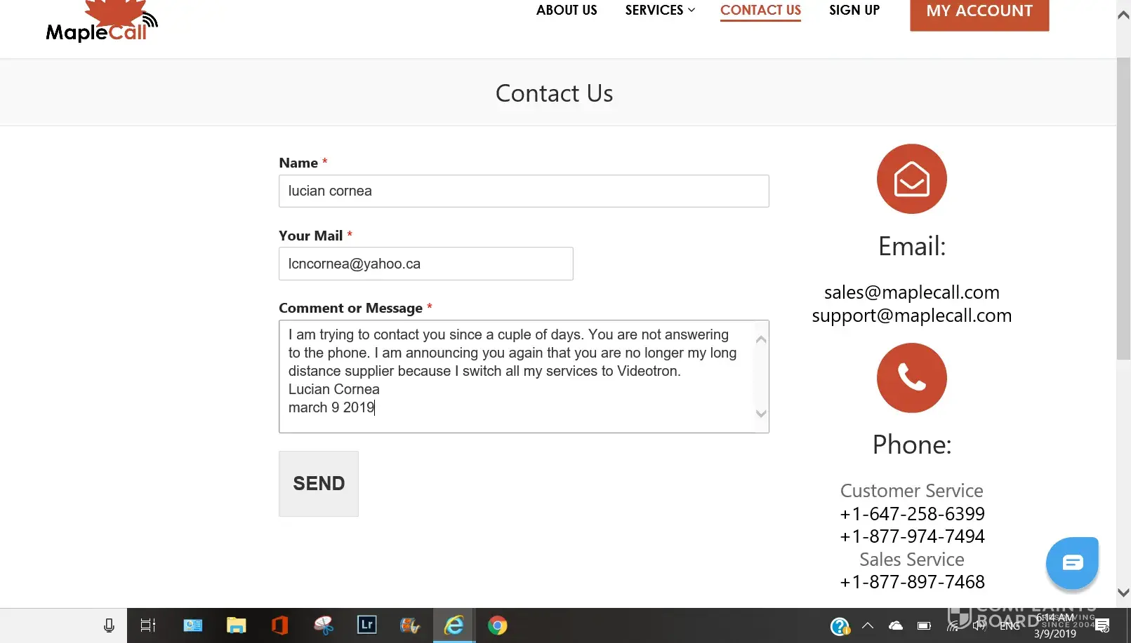 Fast-forward, on march 1, 2019 I called maplecall inc. To have my account closed since:
