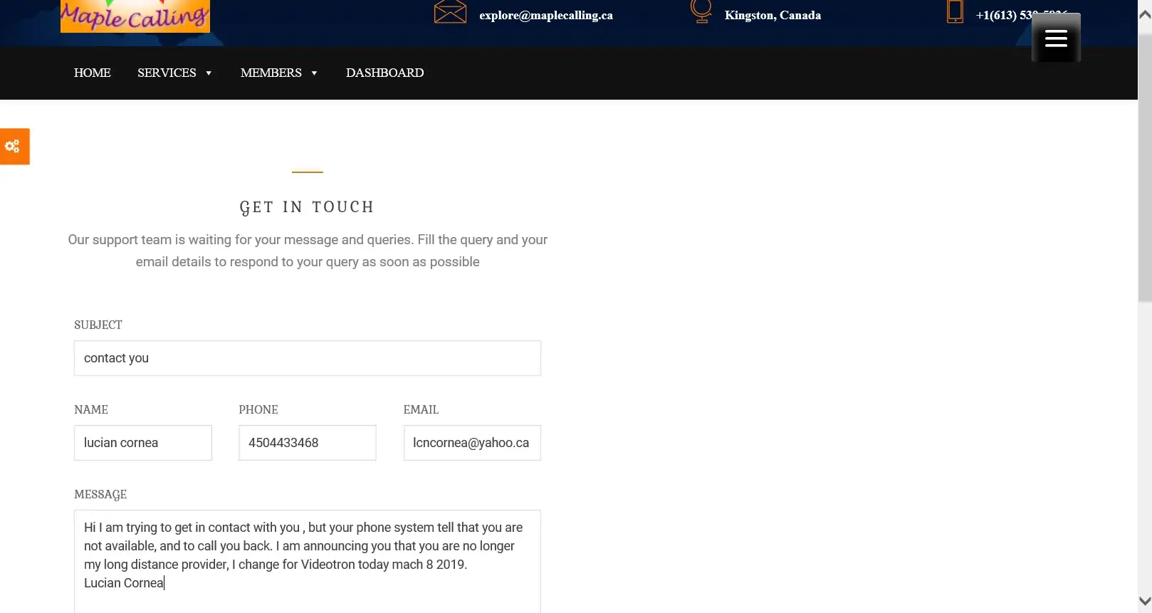 Since Maplecall took over there is nothing but problems