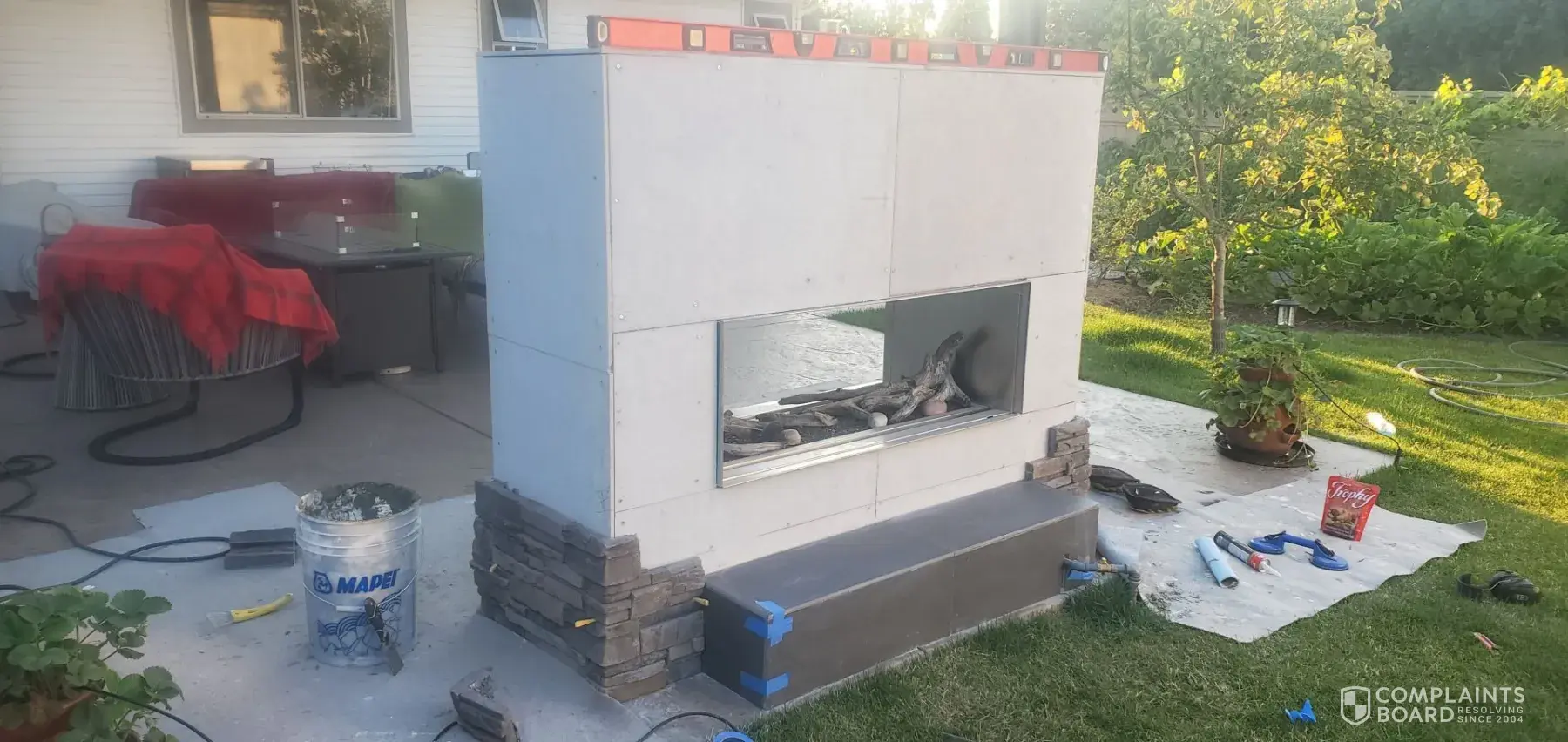 the fireplace was completed and is stunning, although there is no mention of that aspect in this complaint for some reason.