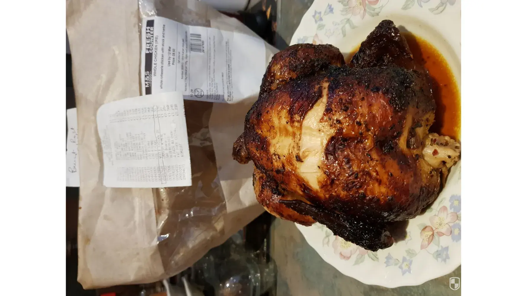 On the 12th March, I bought a roast chicken from the Food store at M&S Bangor at Bloomfield. The following day, on opening the food bag, I found that the chicken was overdone, with the skin burnt and in particular, the wings were badly burnt. I had also had a similar experience in February, purchasing a roast chicken on the 25th February, then finding it burnt and getting a refund of £6.50 on the 27th.