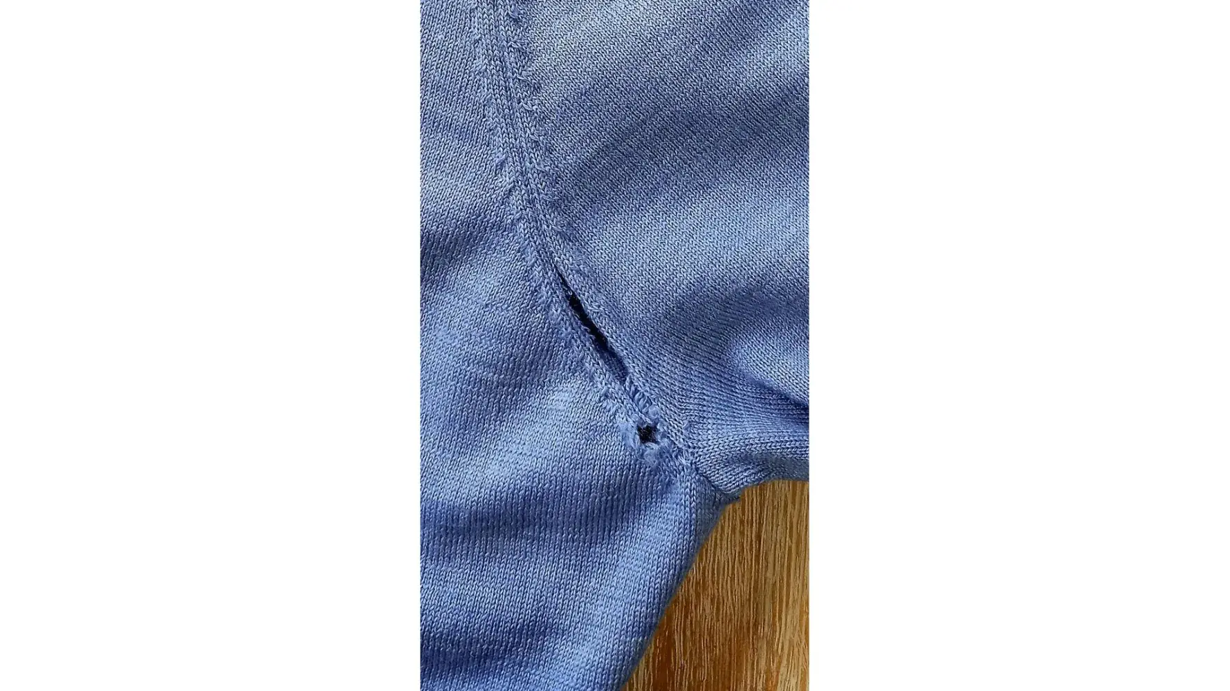Please see the attached pictures of the unworn pullover and also one I have worn several times this year where a seam has also come apart.
