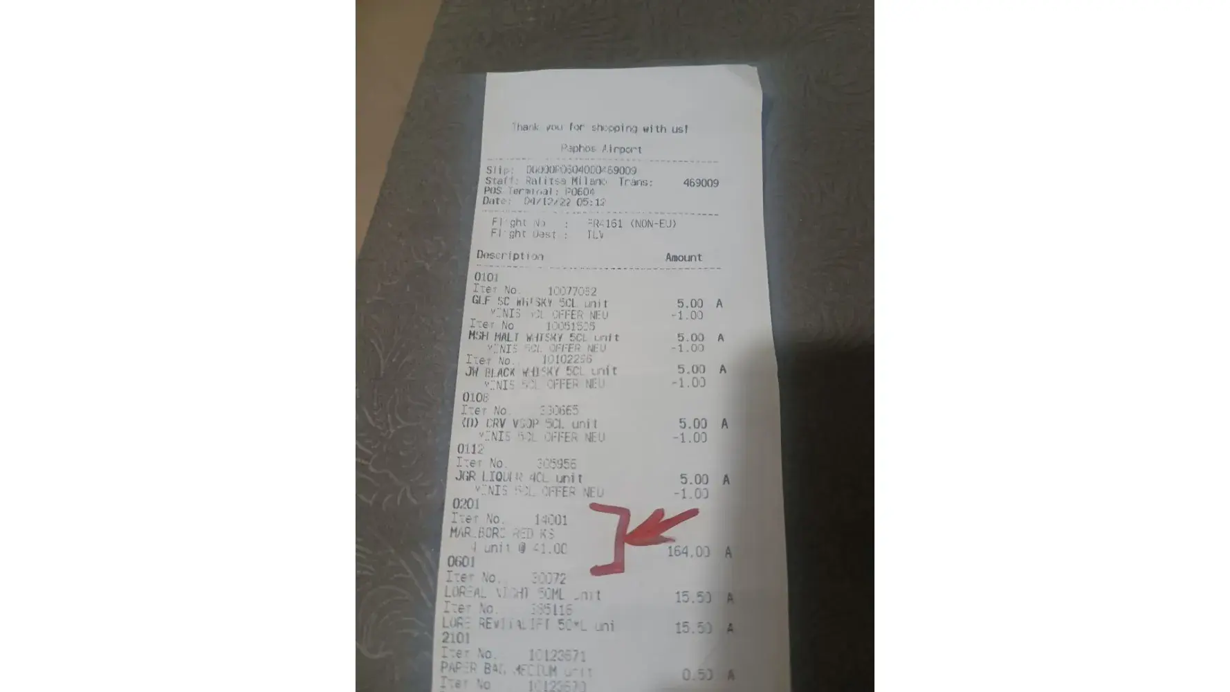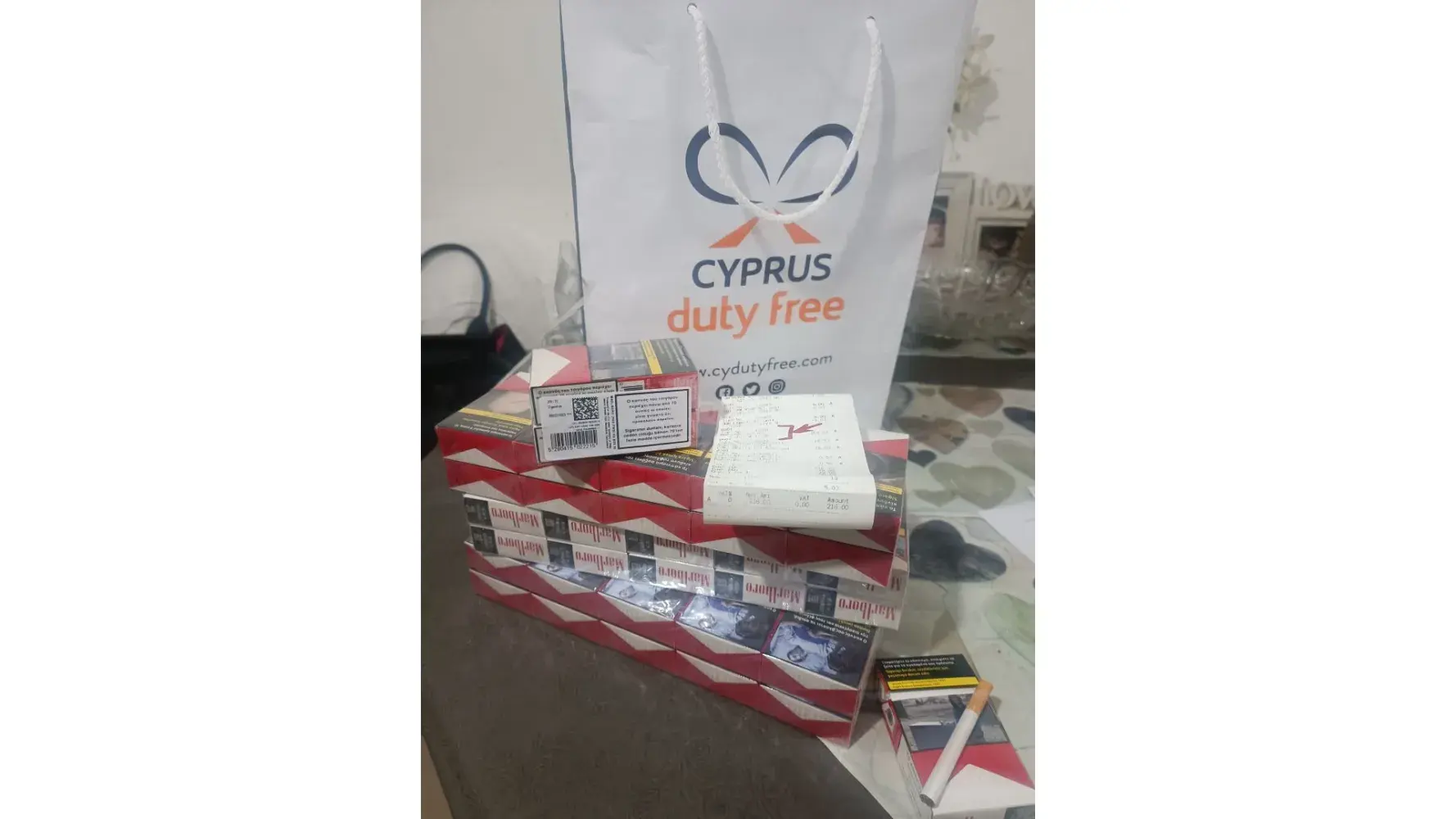 i bought 4 cartons of marlboro red cigarettes at the Cyprus duty free on the 04.12.2022 (have the receipt and i can provide you with the serial number of the product)