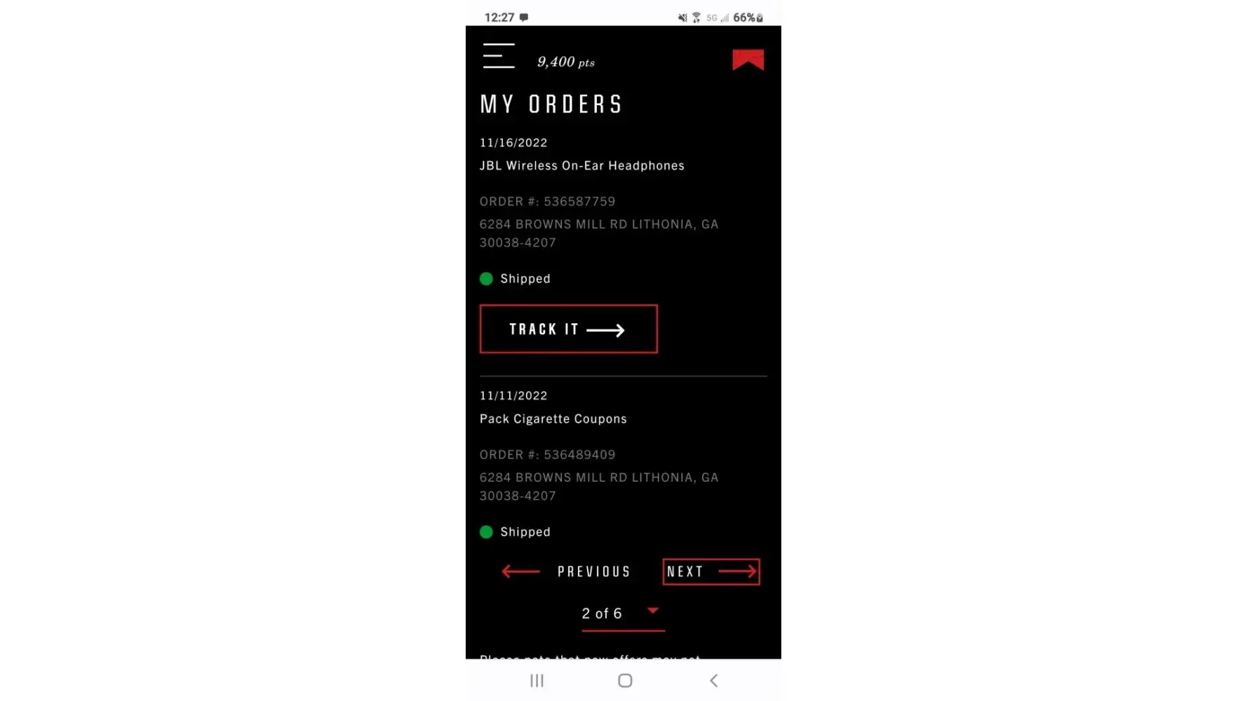 I used 15,000 points to order the JBL Wireless headset on 11/16/2022, have called 3 times and was told the item was backorder, although my item had shipped and I tracked it. Both UPS and USPS say they never received the order. Customer no service is a broken record if "its on backorder" "call back in 7 days, 10 days, even 30 days! It does not show out of stock in the catalog!
