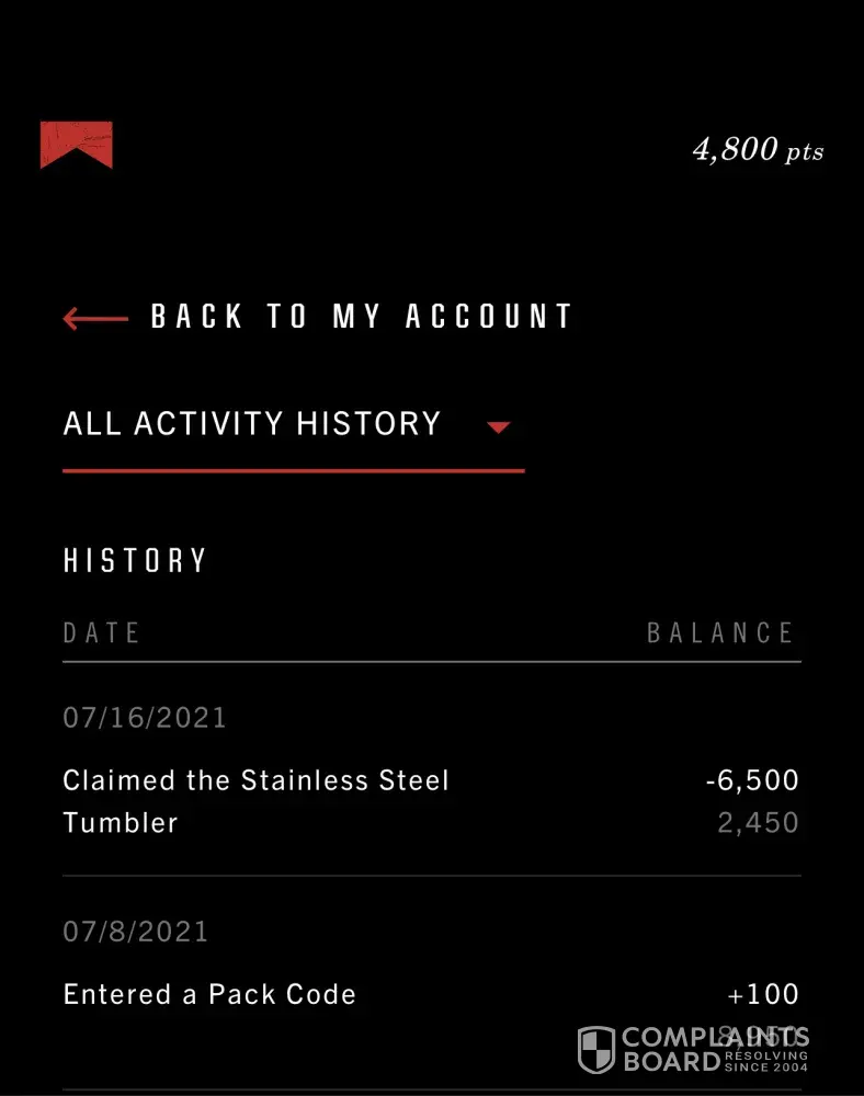 Desired outcome: Points added back or another reward shipped