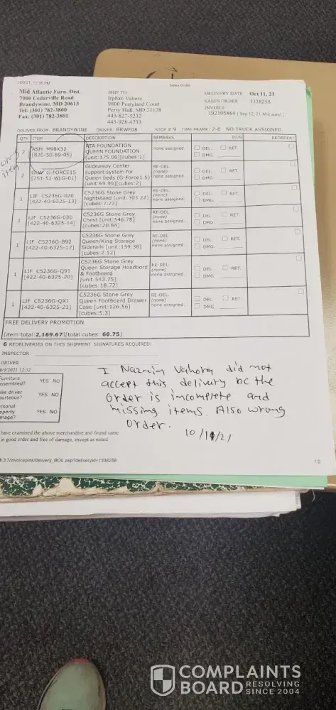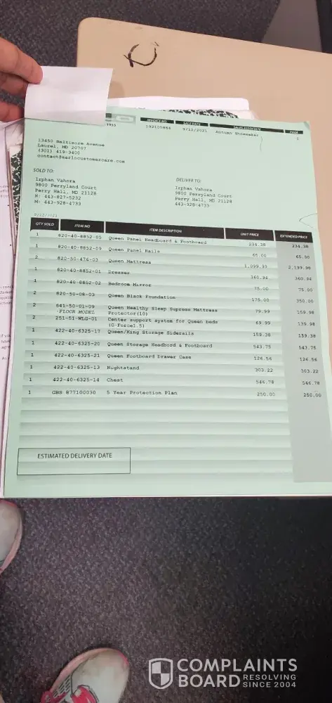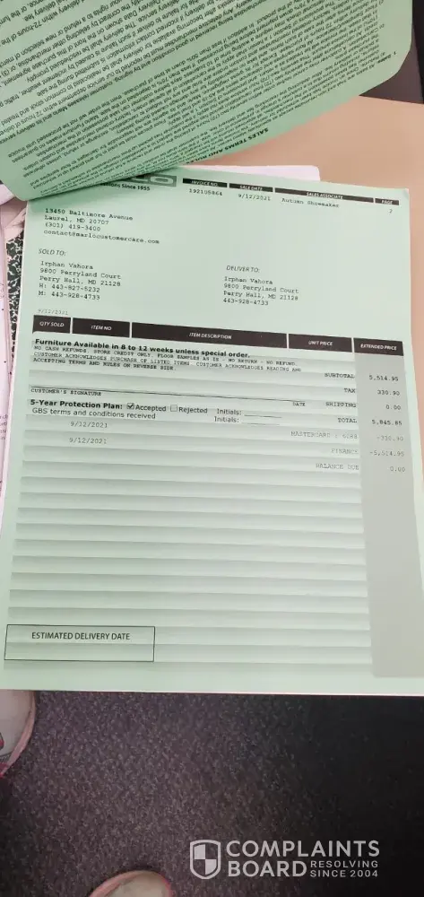 My name is Muatassim Aziz, and I bought furniture from Marlow at Alexandria on February 5th, 2023, for a total amount of 13255.02 having invoice# [protected]. We were told by our customer service representative that we will receive first delivery which should include all items except one Queen bed on next Saturday, Feb 11, 2023. We confirm from the Sales rep that deliver crew will be wearing shoe cover when entering our house. I live in a town house which is about 90% carpet. Rest is the kitchen are where we have a hardwood floor. Delivery from Marlow arrive as agreed, and the crew did wear the shoe cover. However, all furniture except the sofa set was either scratched or damaged. Therefore, we received the Sofa set and return the rest of the furniture. After calling the Marlow, and having a run around of a week, they ensure us and that we should receive all our furniture except the Queen bed next Saturday on February 25, 2023. As scheduled Delivery Crew arrive on February 25, 2023, but this time the crew without even seeing my house refuse to wear the shoe cover. We tried explaining that last crew did wear the shoe cover and that we just have new carpet put on the stairs and bring shoe especially on a rainy day just not going to work. The Delivery crew still refused and in addition informed us that most of the items sent were the same items sent last time and they are either scratched or damaged. After hearing that we called the Alexandria Marlow store to talk to the Sales representative, and tried explaining her that delivery folks are refusing to wear the shoe cover and some of the items seems to be damages as per the delivery crew. However, she keep on insisting that it is against their policy to wear shoe cover, even though we had it confirmed from Sales Rep and last delivery crew wear shoe cover. Customer Sales rep we called was not only rude she hangs up on me. After that we (Myself and my wife) decided to drive to Marlow to complain the manager about this behavior.