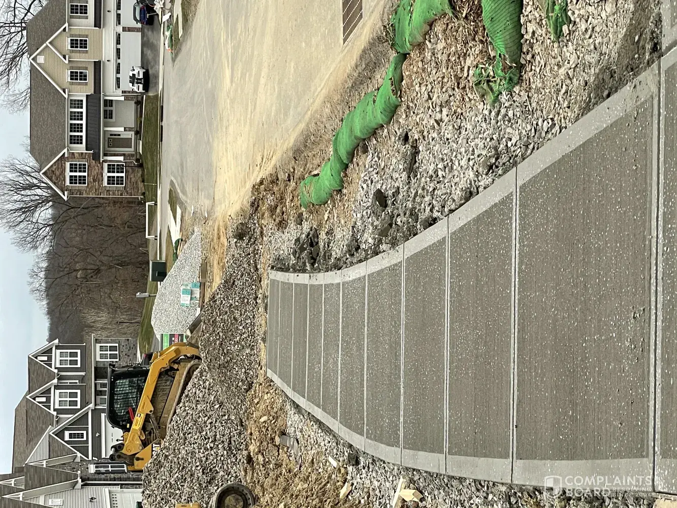 I just move into home with address provided below there were issues with driveway on first walk through and second walk through.This chuncks out on sides of driveway and pathway and then Niebor stated that right after there put the driveway and pathway in it rained heavily. So the day before it started raining and not only the driveway and pathway started erosion throughout rocks started popping up from the surface of driveway and pathway and dark staining as well this needs to be a priority and fix!