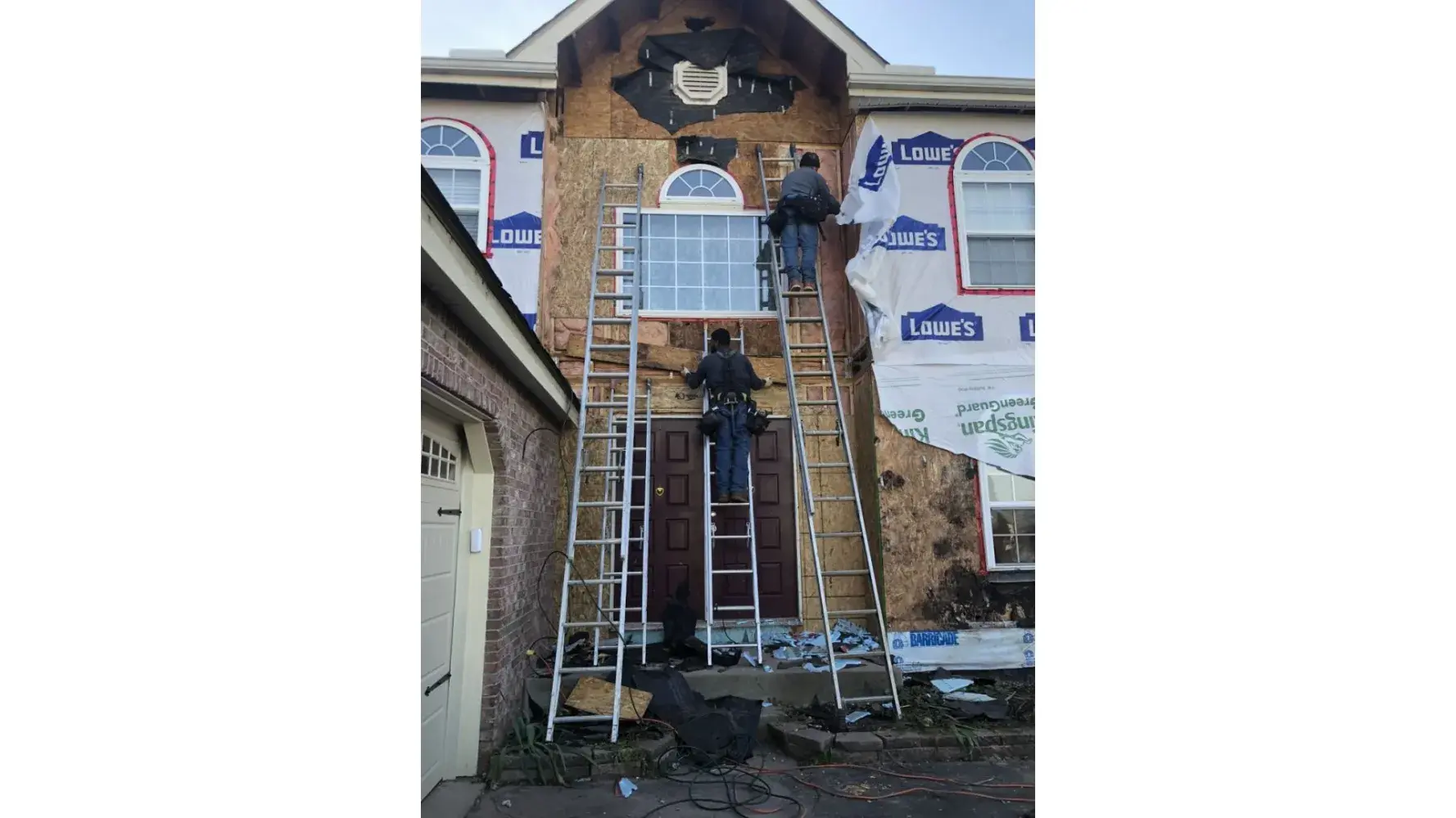 I put in an emergency file as the decorative piece over my garage, on top of my house was literally falling off when we moved in and after hurricane winds fell even more. This is a huge safety issue as a huge piece of our house is able to fly off with force, with lots of difficulties getting anyone's attention over a month later a person came to fix it, not telling me so I couldn't have any conversation I suppose and it looks so bad and sloppy and just sad as it feels as I am getting taken advantage of and shouldn't be like this.