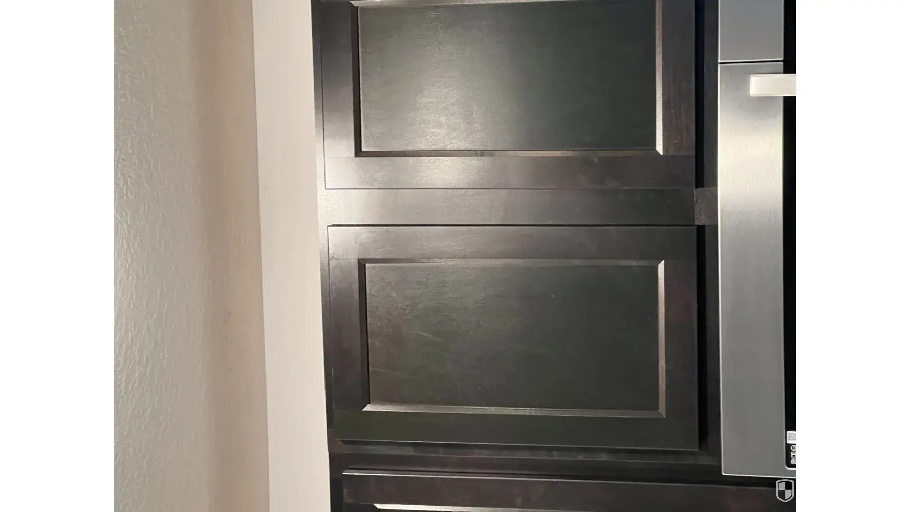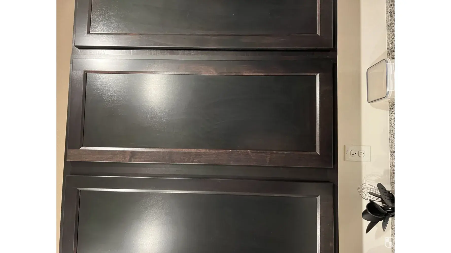 34. The cabinets aren't put in correctly and you can see the gaps in them when you open the doors