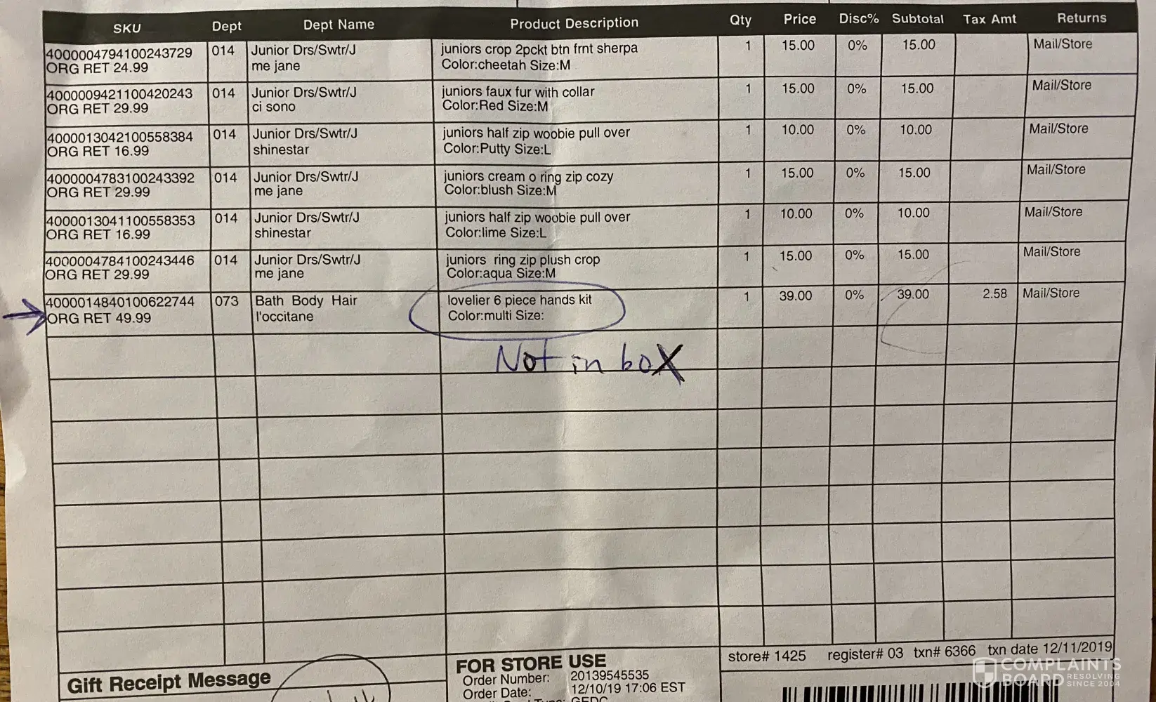 I ordered products from Marshall online on 12/11/19 and received the package in three days. One of the item was not in the package which was a gift I planned to give my family as a Christmas gift. I called the representative on 12/16, who told me I had to wait till 12/24. There is positive deliver separately which was not true. According to the receipt there are all in one package. I called on 12/27, got the same answer which couldn't help me to get my stuff back. I feel so disappointed on this shopping experience and would like to report this to consumer departments