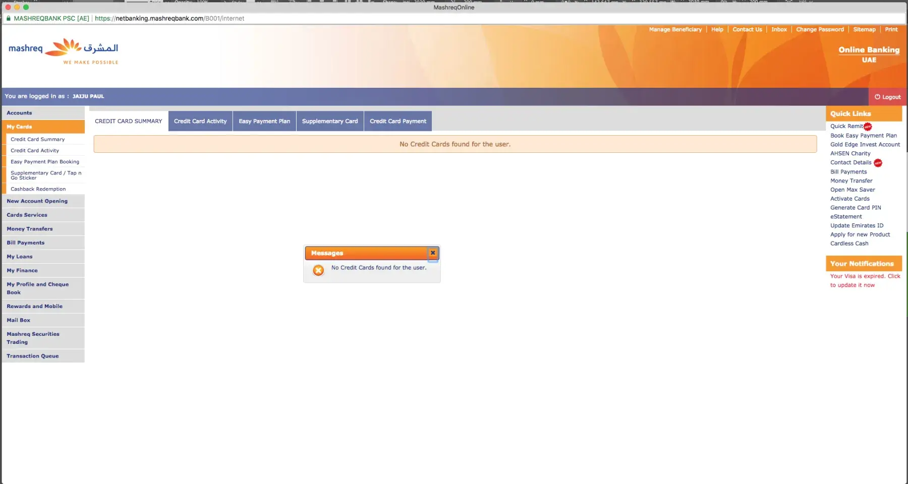 Mashreq Bank Credit card issue