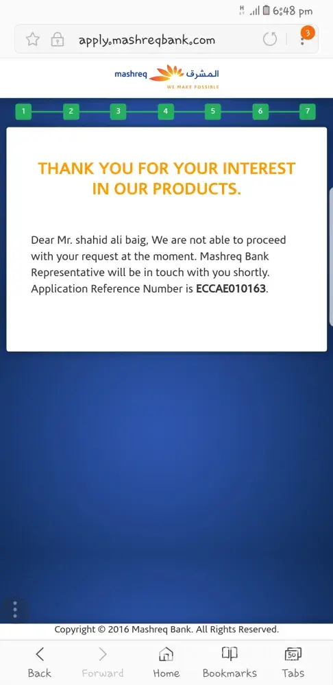 Dear Mashreq bank team,