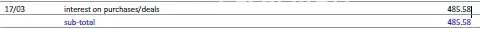 17/03 interest on purchases/deals 485.58