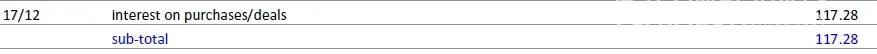 17/12 interest on purchases/deals 117.28