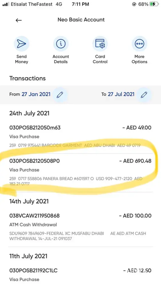 between 15 - 24 th july-2021 690.48Aed was debited from my account without any OTP/ Email Verification.