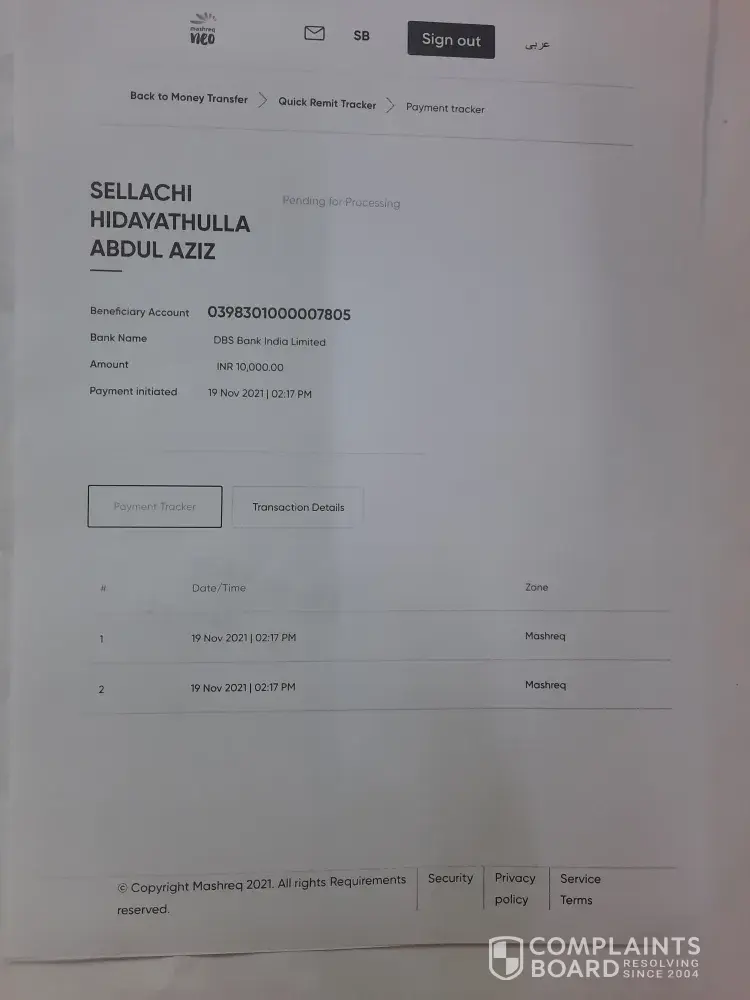 I sent money transaction online from my account to India quick remittance. Transaction reference number NQNI19112189103 transaction date is 19th November 2021.