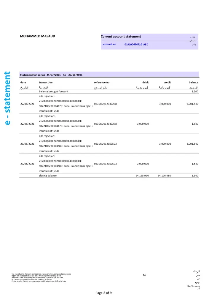 IBAN: AE910330000019100358339