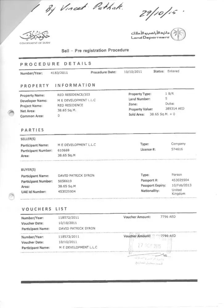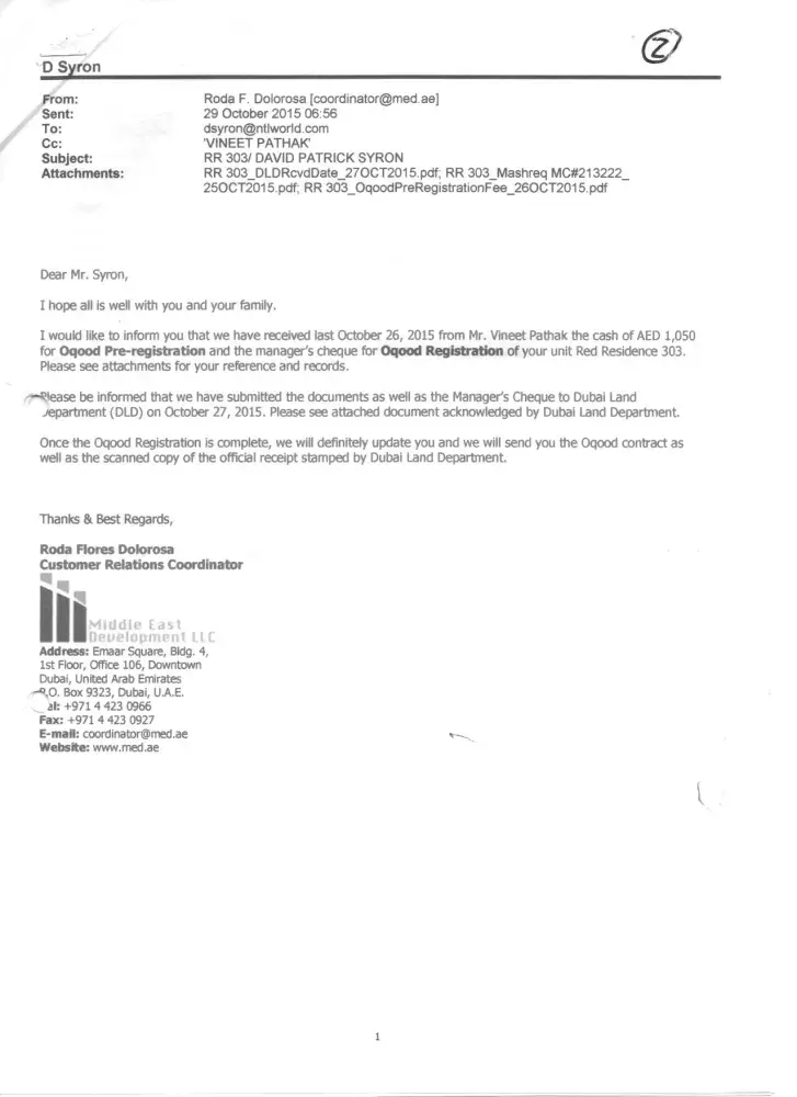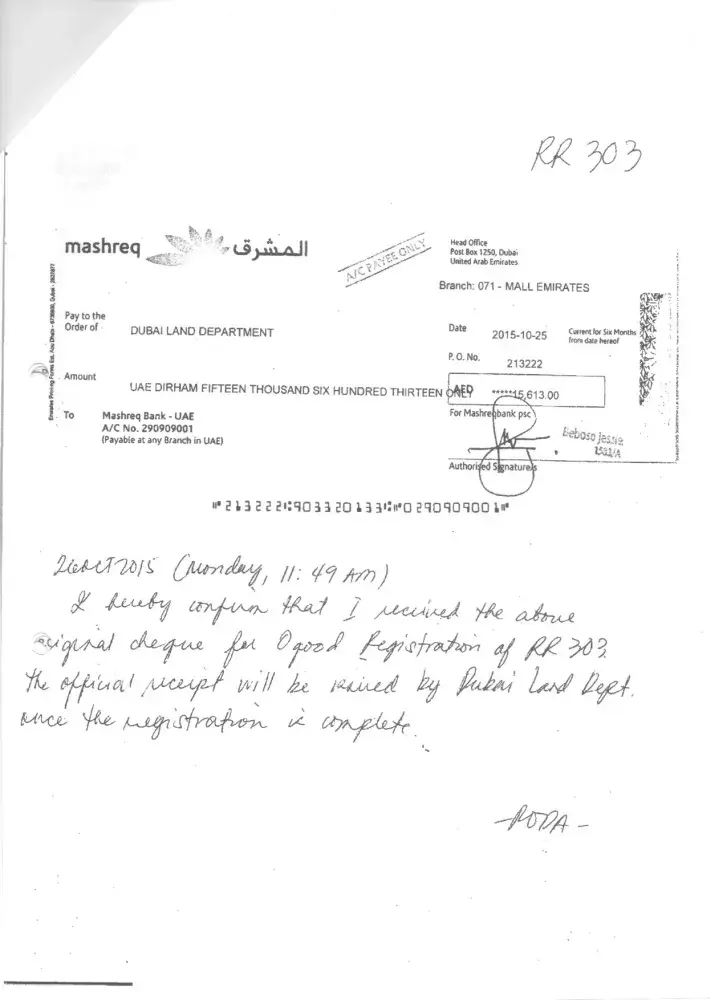 To pay the Dubai Land Department. The Land Department are saying they never received it?. I have sent copies of the cheque. We need to know if the cheque has ever been cashed?