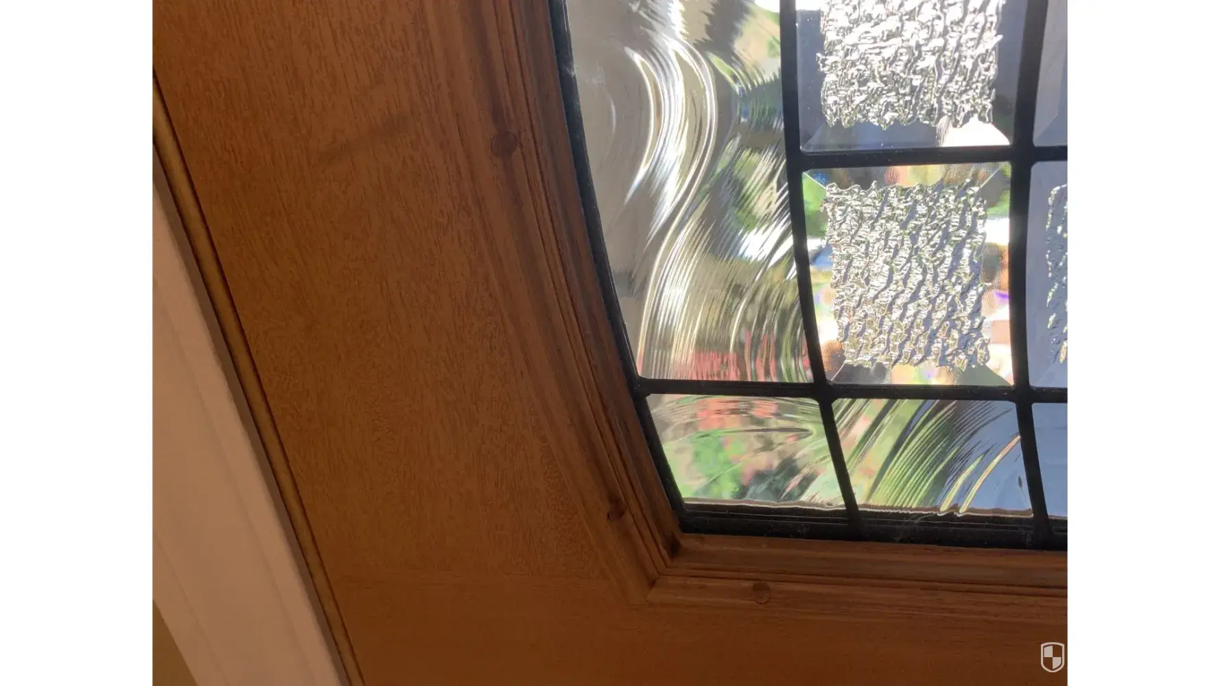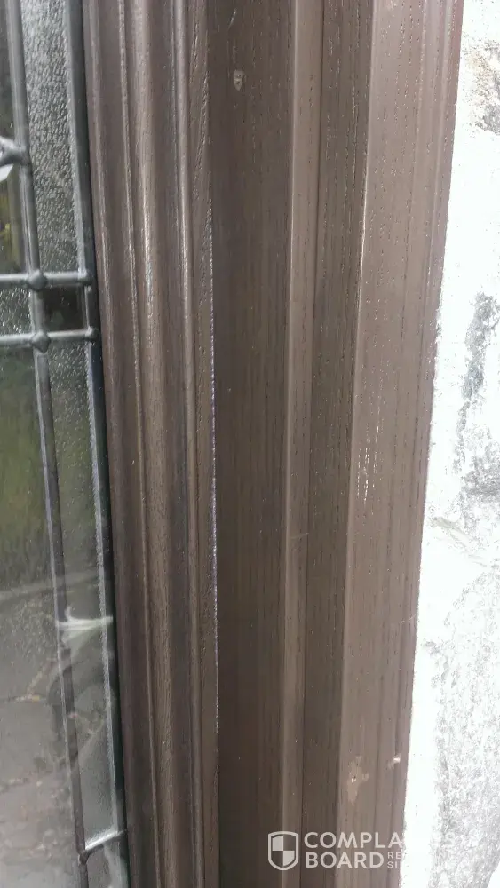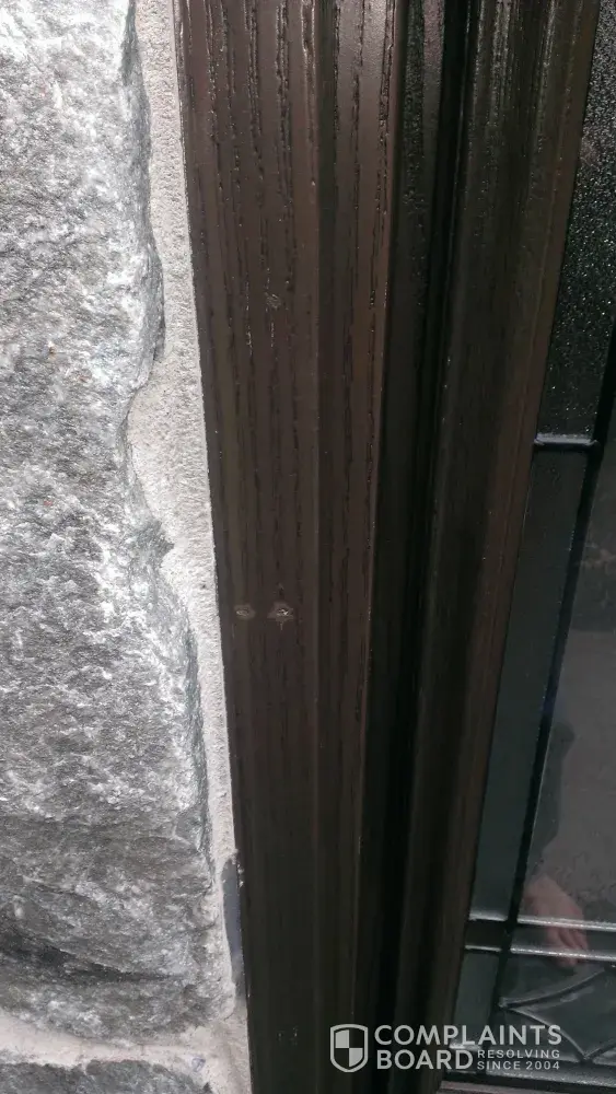 In addition, the plugs that cover the fasteners that hold the window in are stained too dark a shade. So there are 14 1/4""pimples" on the door's window frame. Same with the sidelight.