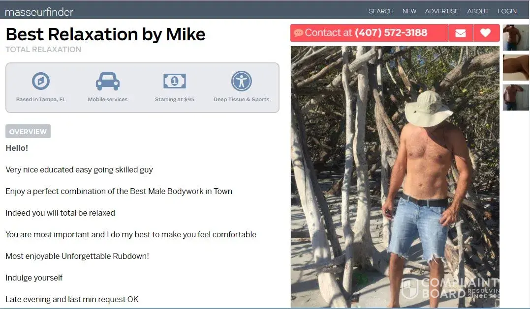 The first attached screenshot pic would prove the names "Dave" and "Mike" were used by the SAME person. Currently on his MFinder ad, look at the reviews - the name "Mike" was used on the 7/10/2017 review. The name "Dave" was used on 1/17/2017 review.
