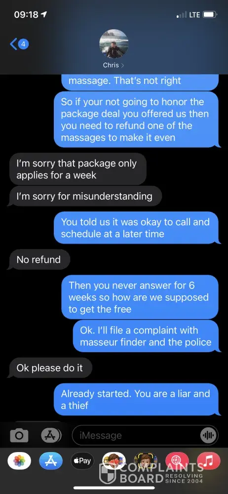 You can contact MasseurFinder.com's customer service if you encounter any issues with a therapist booked through their platform.
